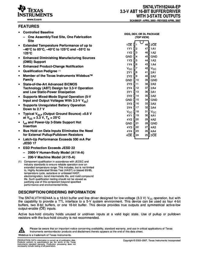 Buffer/Line Driver 16-CH Non-Inverting 3-ST BiCMOS 48-Pin TSSOP T/R