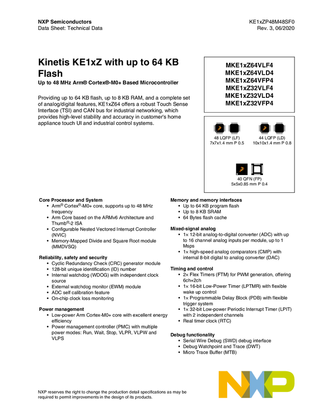 48MHz, 5V Main Stream CM0+ MCU with NXP Touch (TSI) and CAN Control