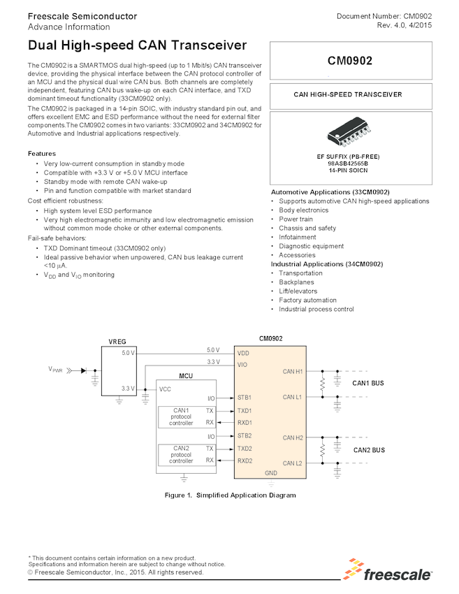 CM0902, Dual High-speed CAN Transceiver