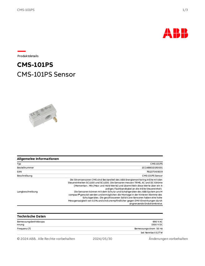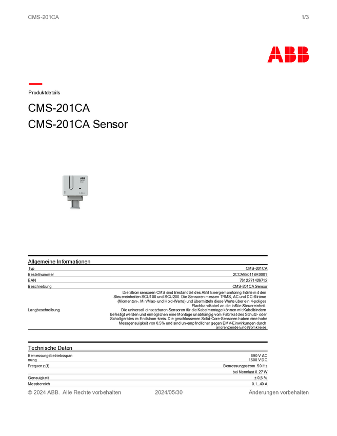 ABB CMS-201CA 2CCA880118R0001 Czujnik prądu 1 szt.