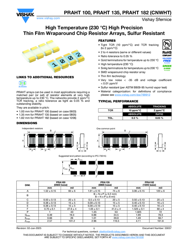 High Temperature (230 °C) High Precision Thin Film Wraparound Chip Resistor Arrays, Sulfur Resistant