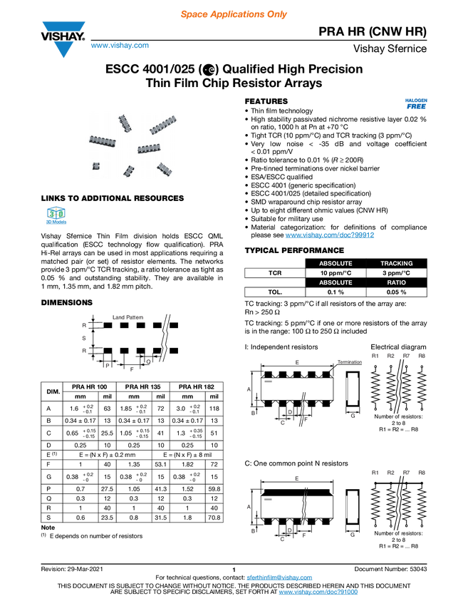 ESCC 4001/025 Qualified High Precision Thin Film Chip Resistor Arrays