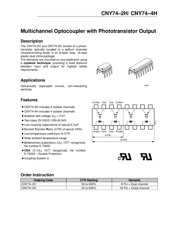 6-Pin DIP High BVceo Phototransistor Output Optocoupler