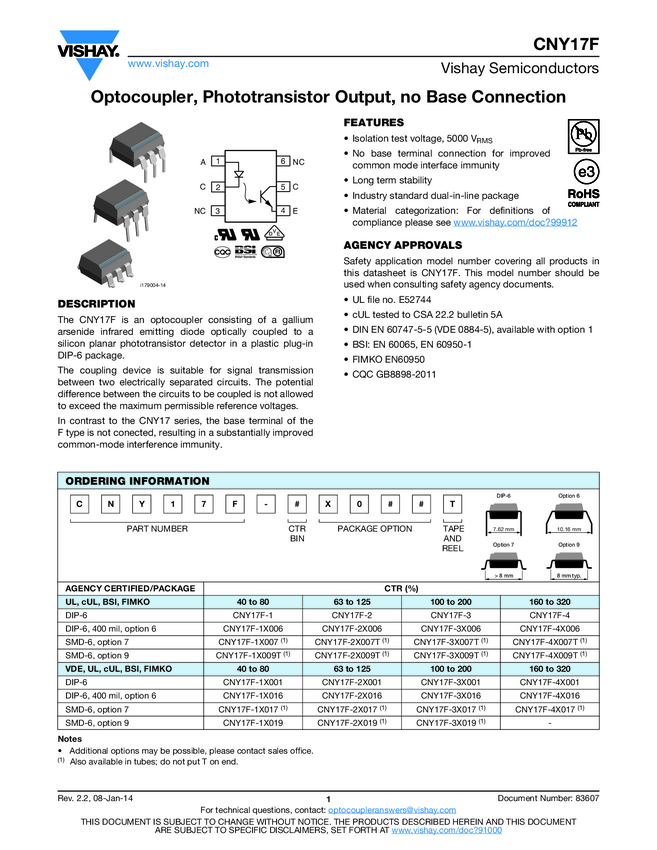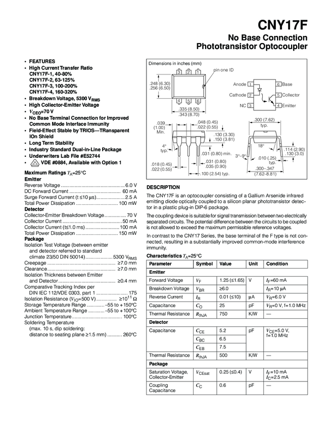6-Pin DIP Phototransistor Output Optocoupler-No Base Connection