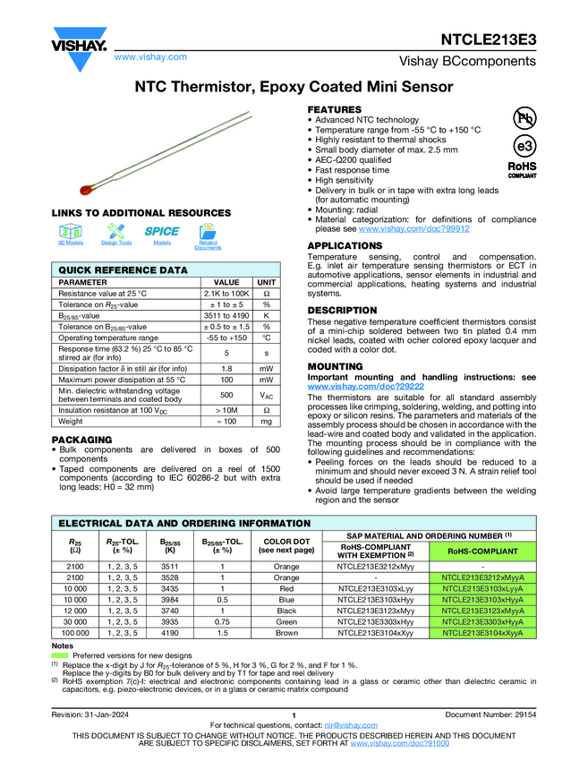 NTC Thermistor, Epoxy Coated Mini Sensor