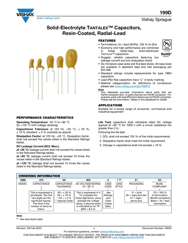 Solid-Electrolyte TANTALEX™ Capacitors, Resin-Coated, Radial-Lead