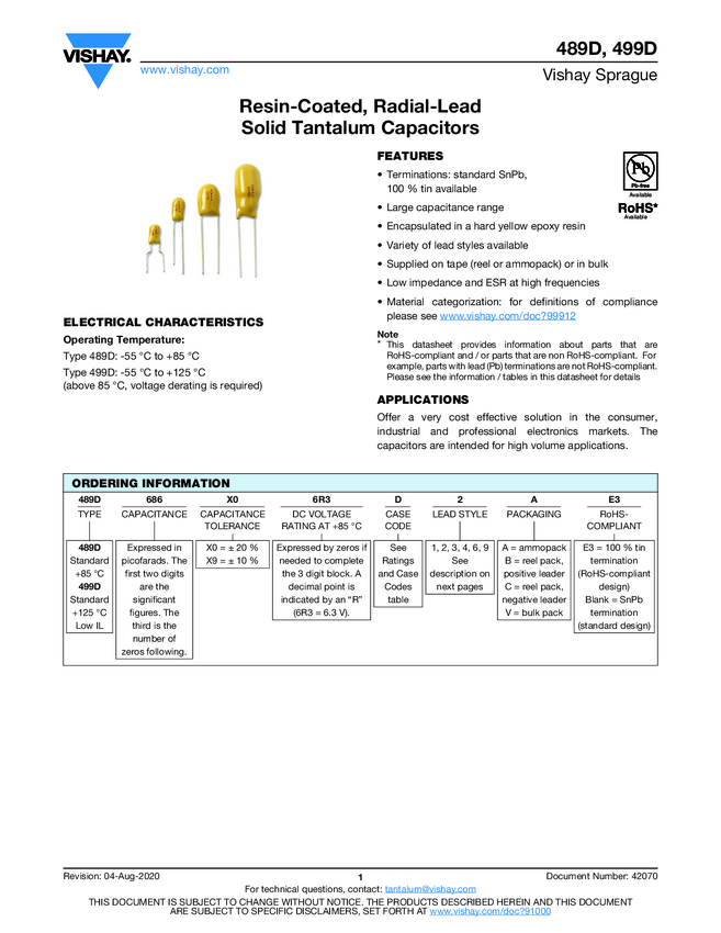 Resin-Coated, Radial-Lead Solid Tantalum Capacitors