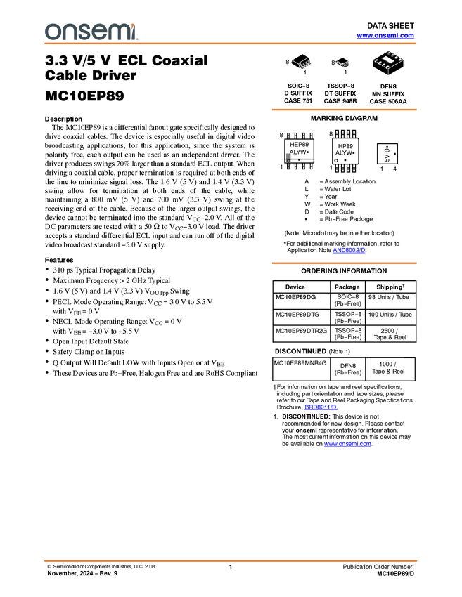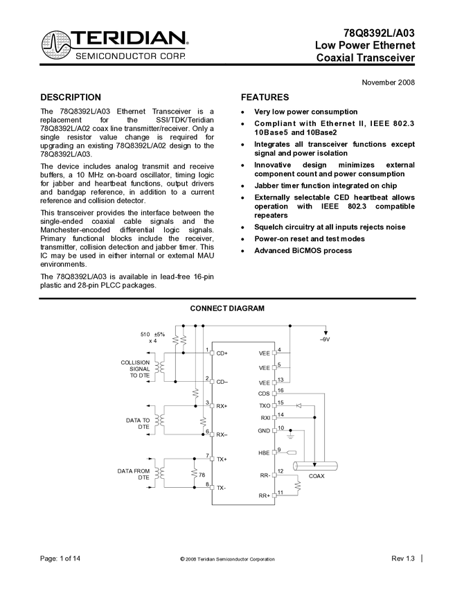HYC9088A ARCNET Twisted Pair and Coaxial Compatible High Impedance Transceiver Data Sheet