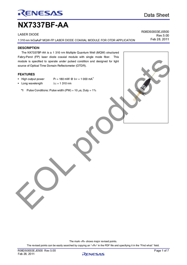 310 nm InGaAsP MQW-FP Laser Diode COAXIAL Module for OTDR Application