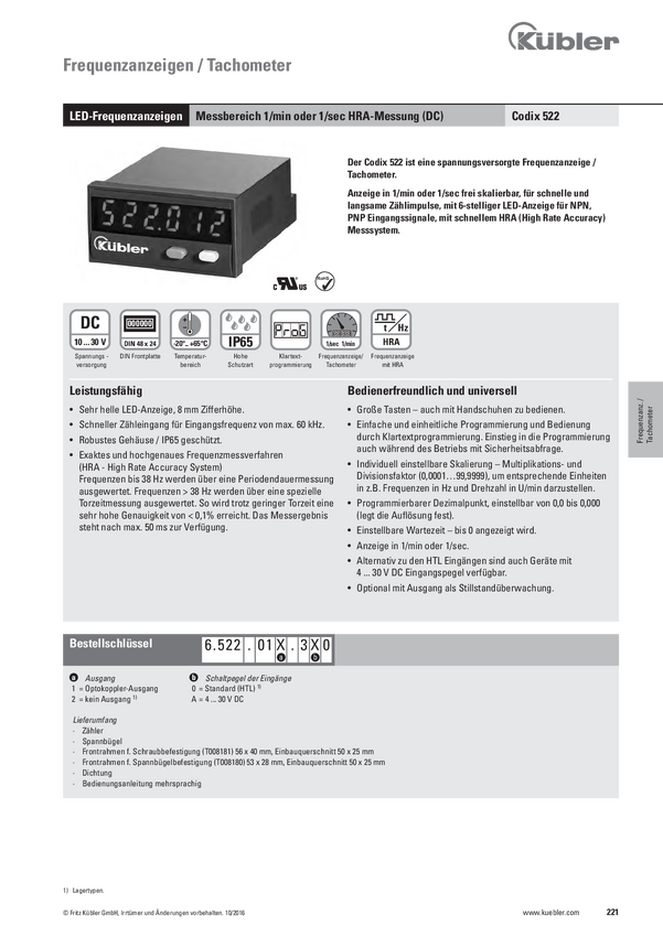 Licznik impulsów Kübler Automation CODIX 522 6.522.012.300