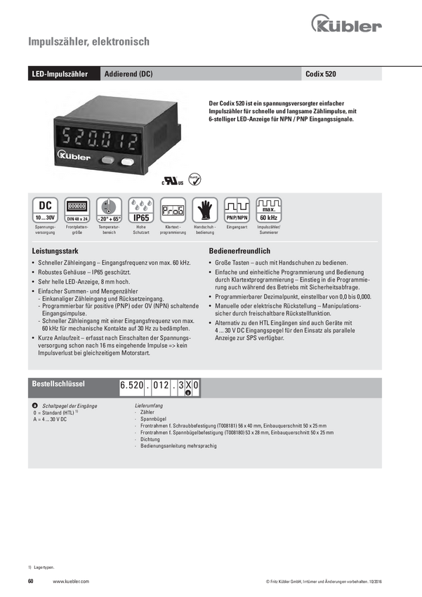 Licznik impulsów Kübler Automation CODIX 520 6.520.012.300