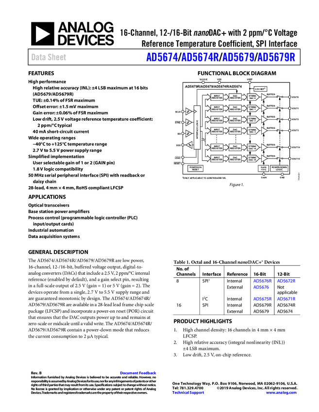 16-Channel, 12-/16-Bit DAC+ with 2 ppm/°C Voltage Reference Temperature Coefficient, SPI Interface