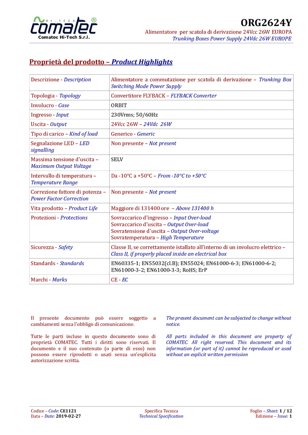 Zasilacz Comatec ORG2624Y 24 V 1.1 A 26 W