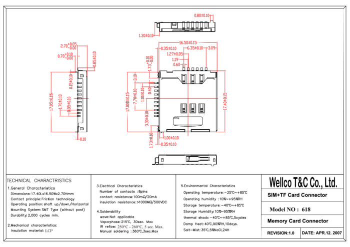 Podstawka , SMT, taśmowana 700szt/rolka, WELLCO