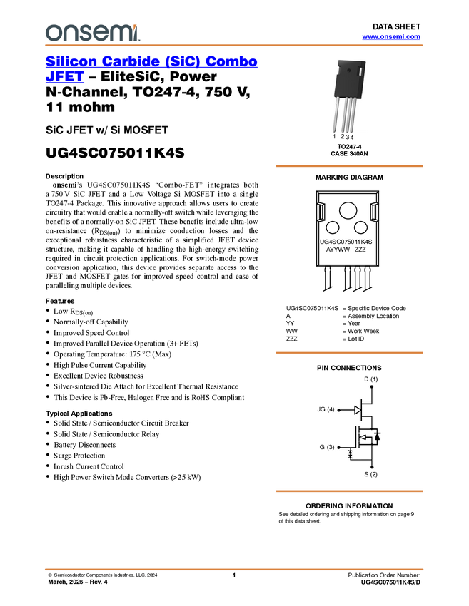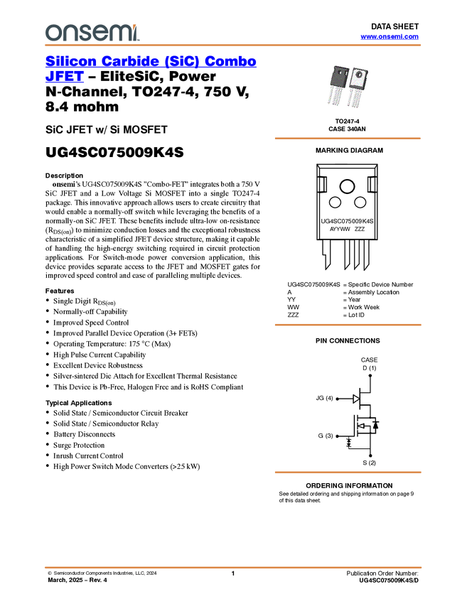 Silicon Carbide (SiC) Combo JFET - EliteSiC, 8.4 mohm, 750V, TO-247-4L