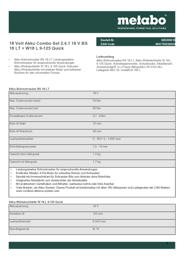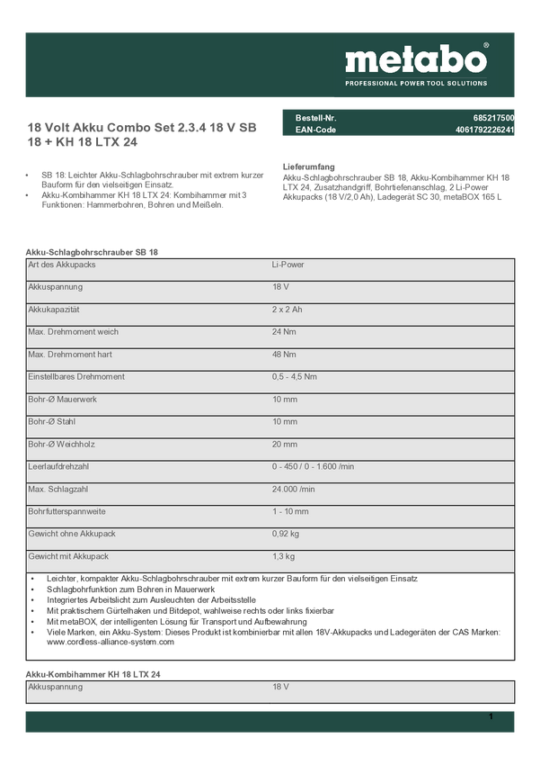 Metabo Combo Set 2.3.4 685217500 Zestaw narzędzi
