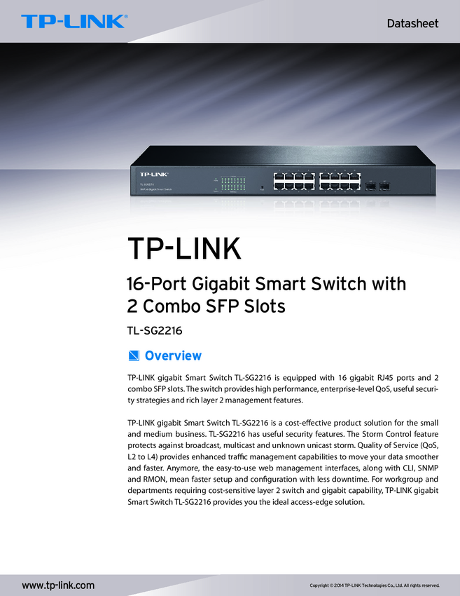 Przełącznik Smart 16 portów Gb, 2 sloty combo SFP