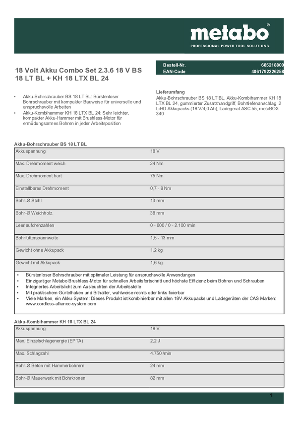 Metabo Combo Set 2.3.6 685218800 Zestaw narzędzi