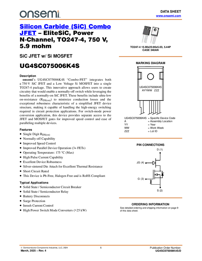 Silicon Carbide (SiC) Combo JFET - EliteSiC, 5.3 mohm, 750V, TO-247-4L