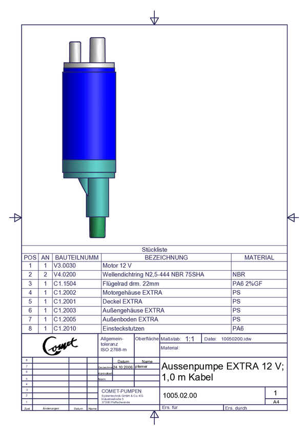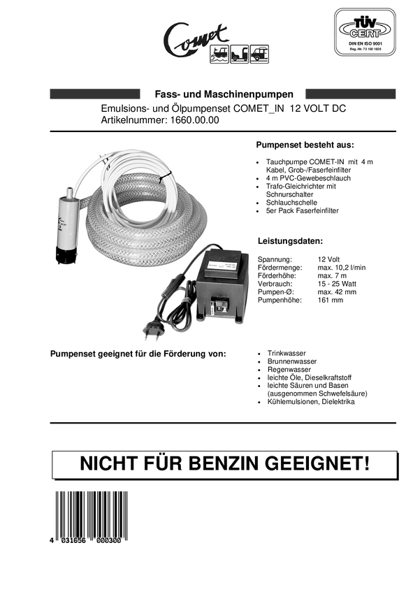 Pompa niskonapięciowa Comet 1005.02.00, N/A, N/A, 540 l/h, 12 V