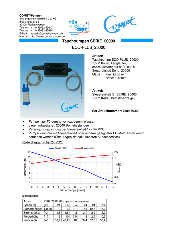 Comet 7369.79.80 ECO Plus Pompa zanurzeniowa, niskonapięciowa 900 l/h 12 m