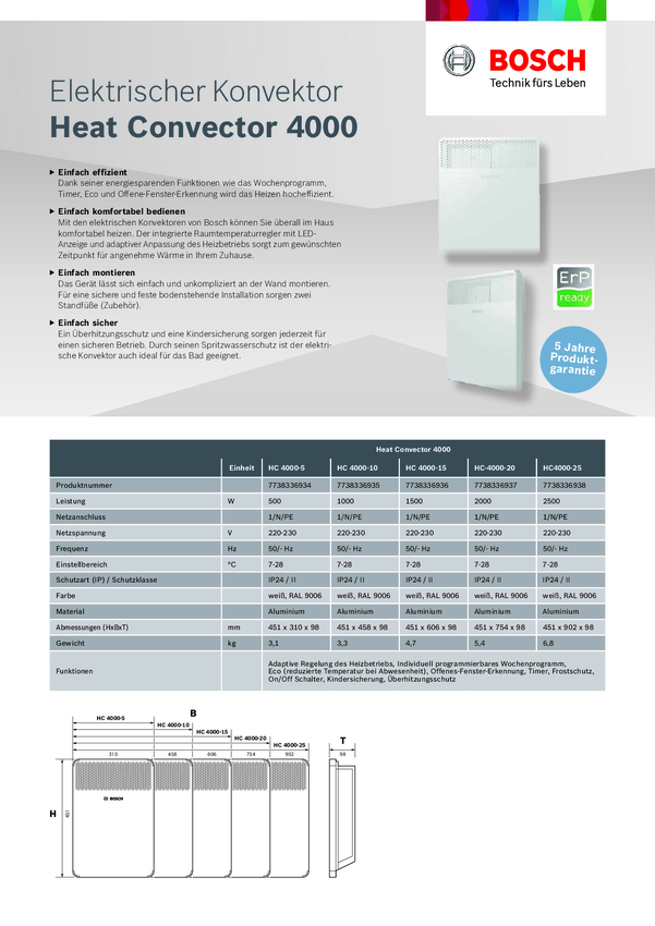 Bosch Home Comfort HC-4000-5 7738336934, 500 W, 5 m²