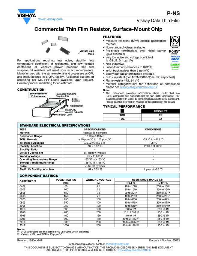 Commercial Thin Film Chip Resistor, Surface-Mount Chip