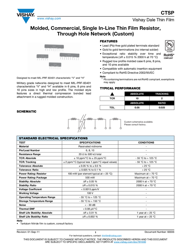 Molded, Commercial, Single In-Line Thin Film Resistor, Through Hole Network (Custom)