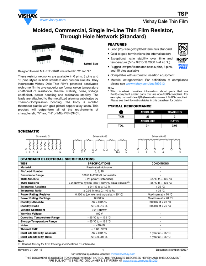 Molded, Commercial, Single In-Line Thin Film Resistor, Through Hole Network (Standard)