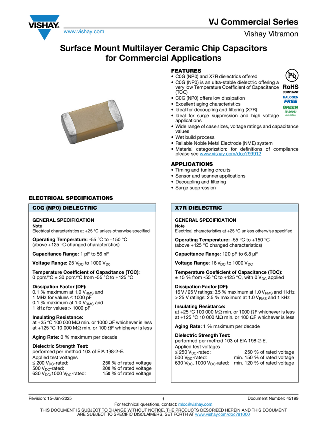 Surface Mount Multilayer Ceramic Chip Capacitors for Commercial Applications