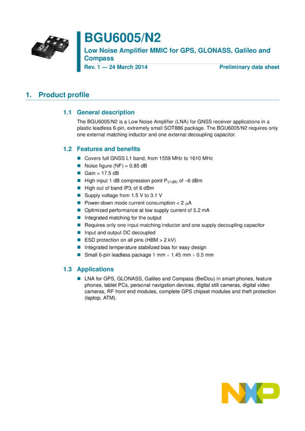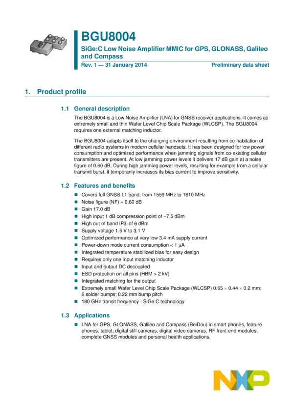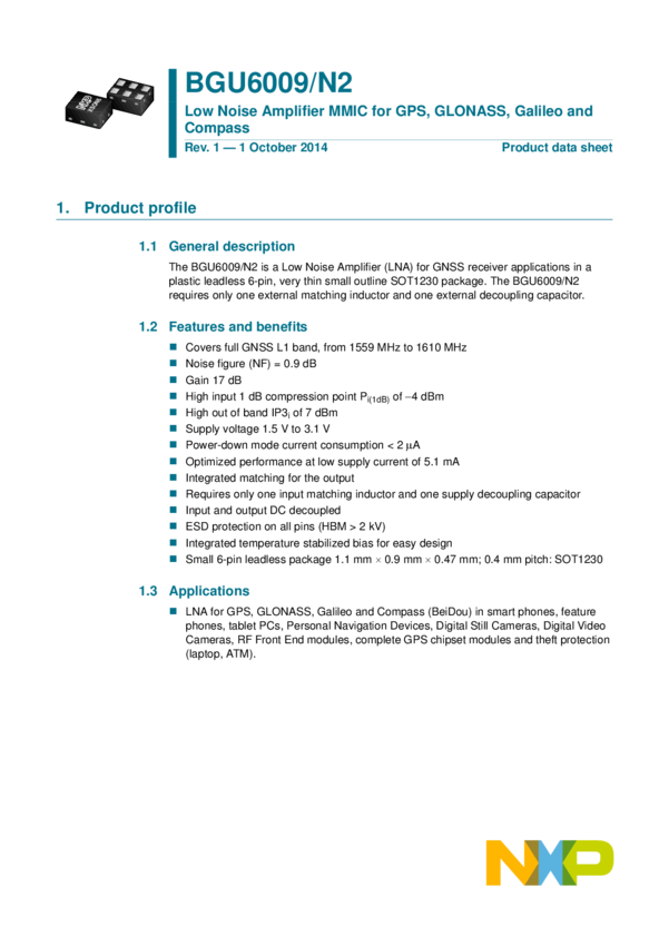 Low Noise Amplifier MMIC for GPS, GLONASS, Galileo and Compass