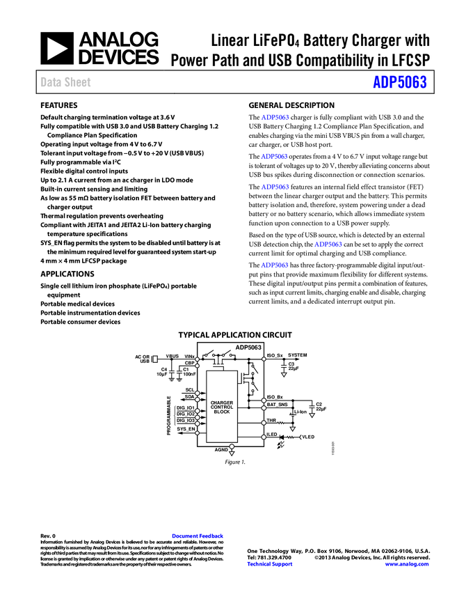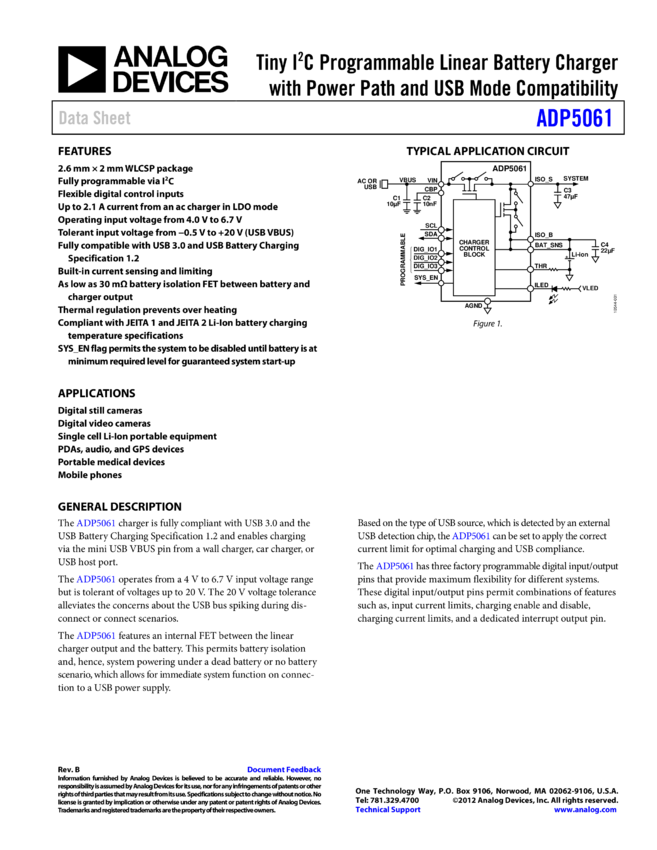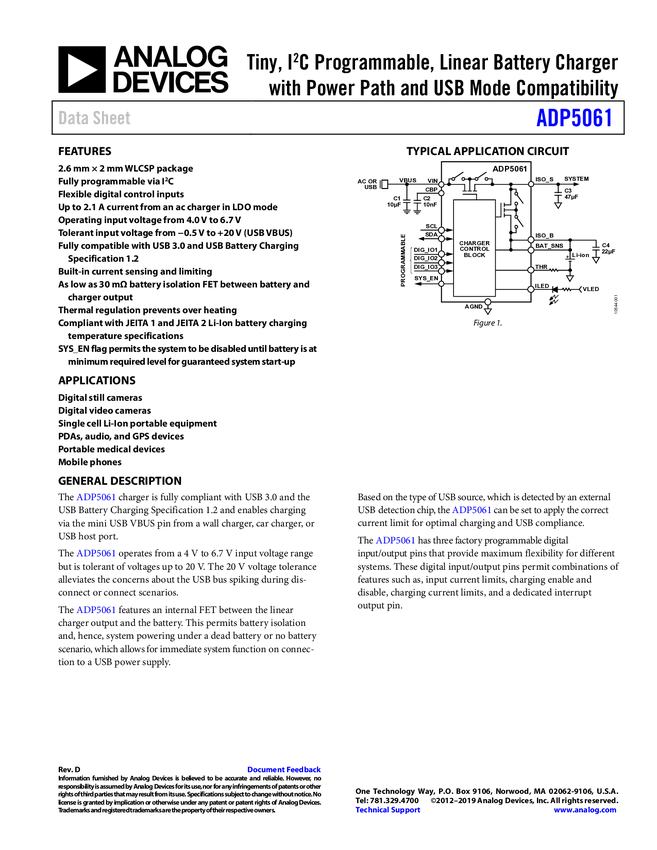 ADP5061: Tiny IC Programmable Linear Battery Charger with Power Path and USB Mode Compatibility