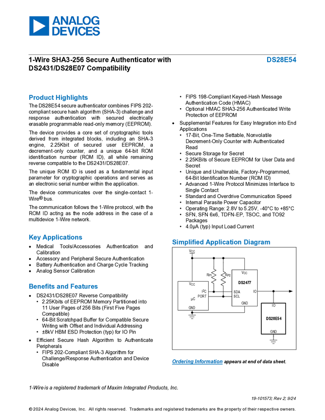 1-Wire SHA3-256 Secure Authenticator with DS2431/DS28E07 Compatibility