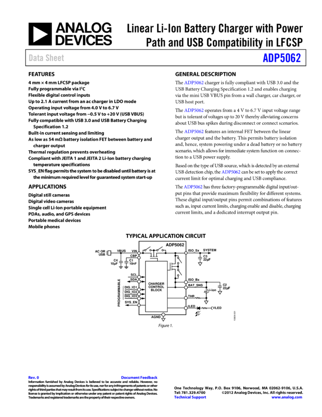 ADP5062: Linear L-Ion Battery Charger with Power Path and USB Compatibility in LFCSP