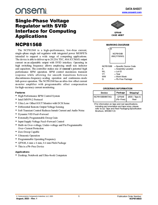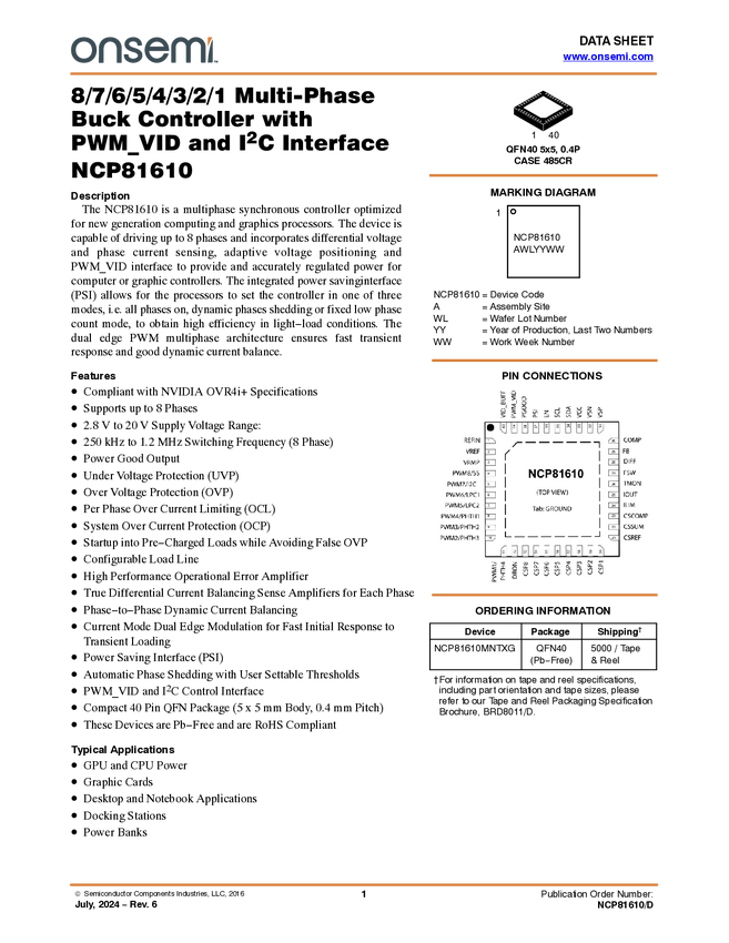 Multiphase synchronous controller optimized with PWM_VID and I2C Interface for new generation computing and graphics processors.