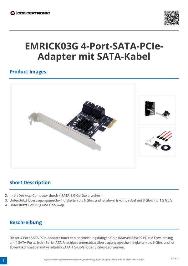 Conceptronic EMRICK 4-portowy adapter SATA PCIe z kablem SATA