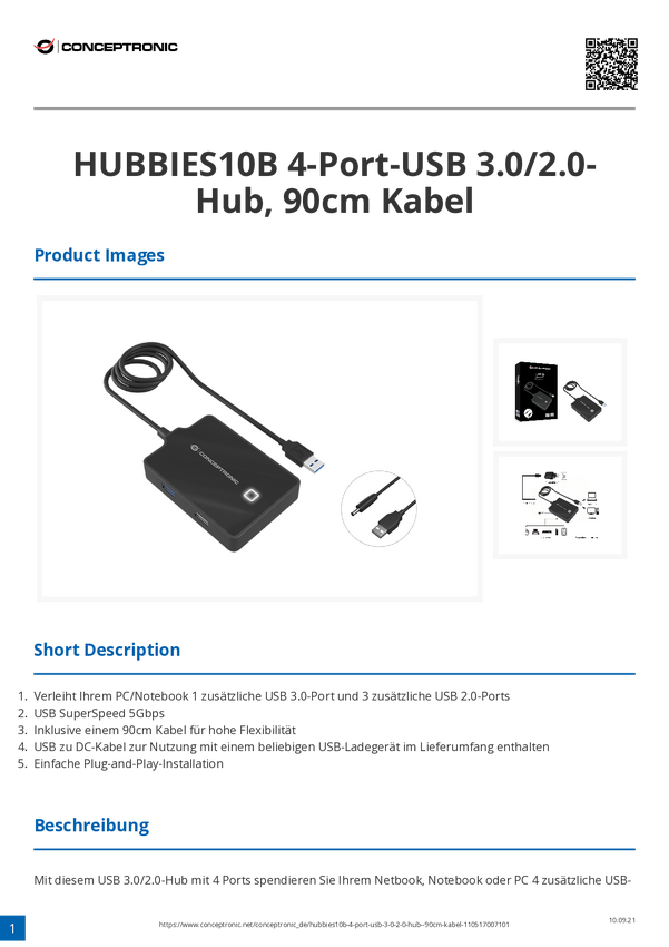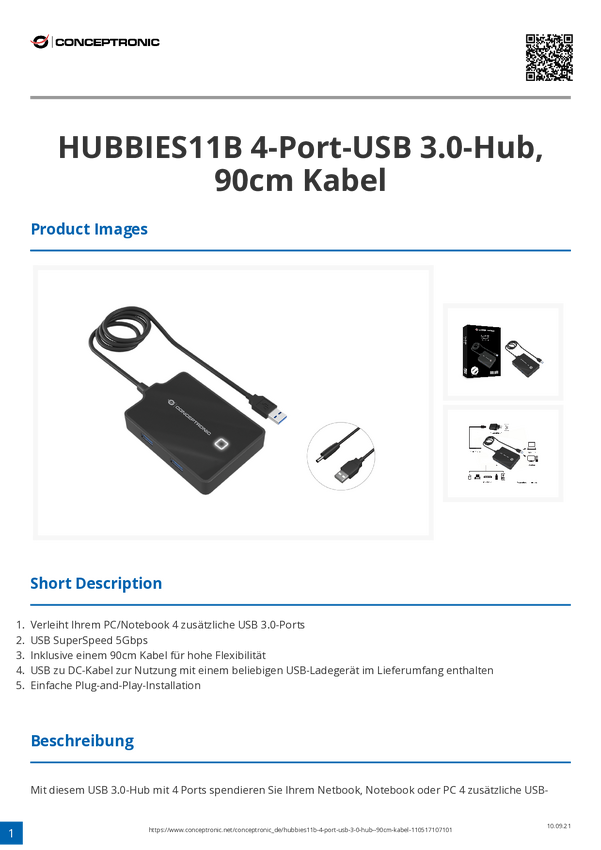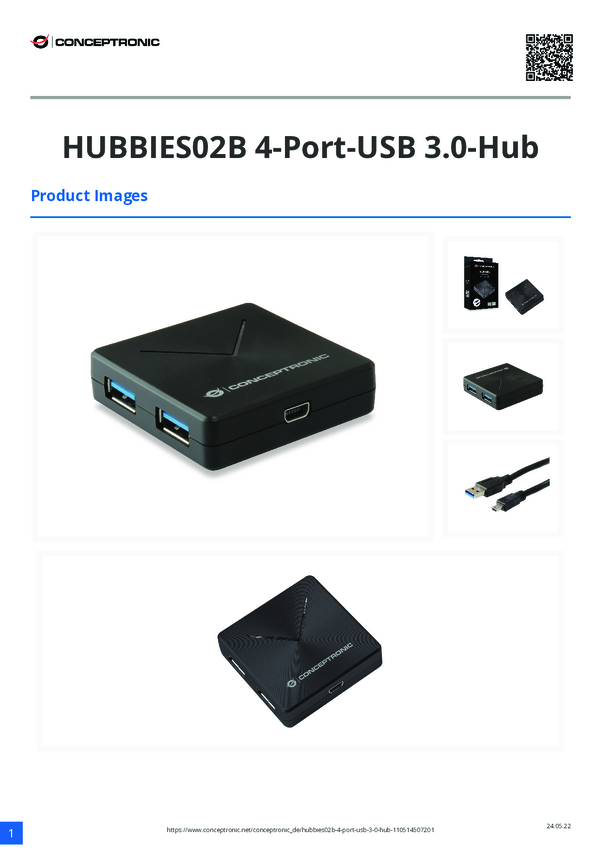 Conceptronic HUBBIES11B USB-Hub 4 porty USB-A USB 3.1 Gen1 5 GBit/s czarny HUBBIES11B