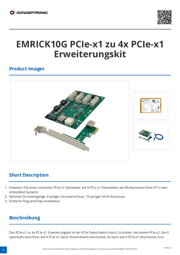 Karta PCI-Express Conceptronic EMRICK PCIe-x1 zu 4x PCIe-x1 Erweiterungskit EMRICK10G PCIe