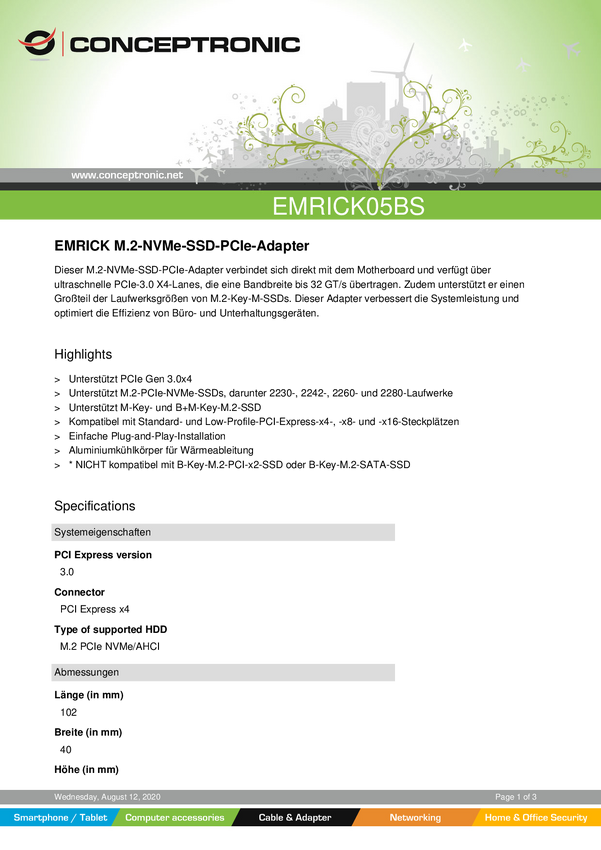 Karta PCI-Express Conceptronic EMRICK M.2-NVMe-SSD-PCIe-Adapter EMRICK05BS PCIe