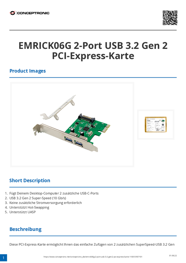 Conceptronic EMRICK 2-portowa karta PCI Express USB 3.2 Gen 2