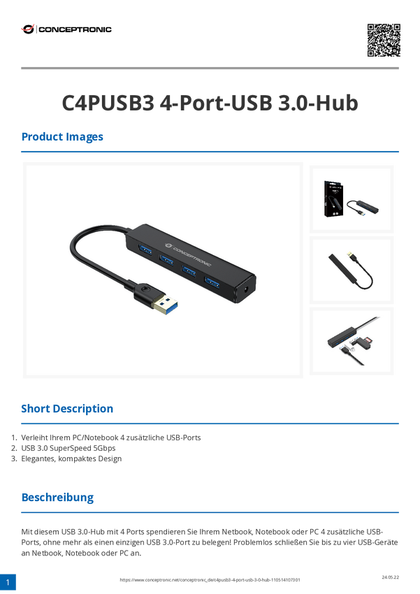 Conceptronic HUBBIES USB-C na 4-portowy koncentrator USB 3.0