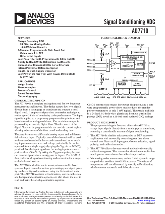 AD7710: CMOS, 24-Bit Signal Conditioning ADC with Current Source