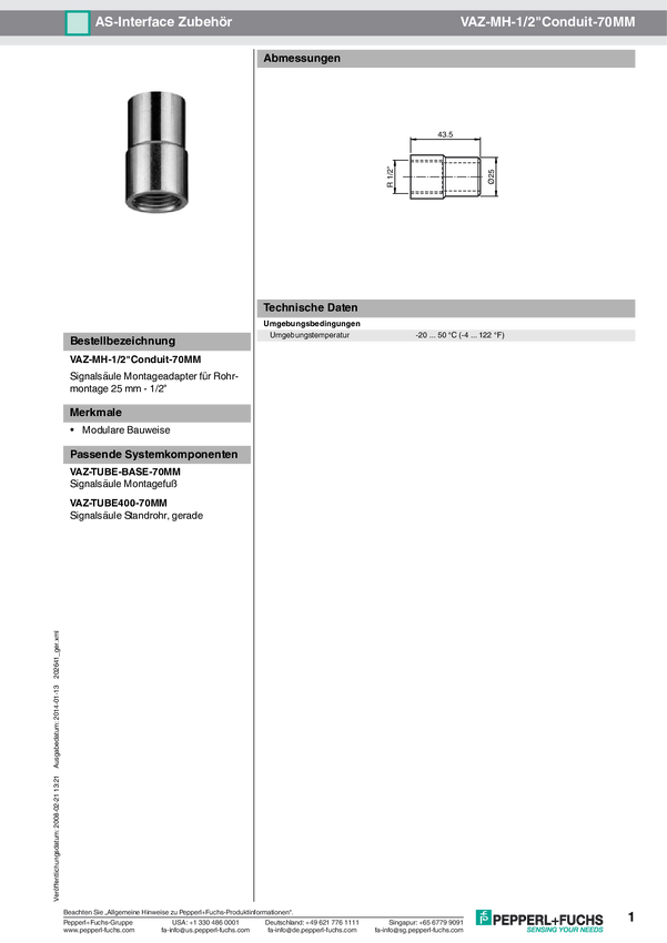 Uchwyt montażowy Pepperl+Fuchs VAZ-MH-1/2"Conduit-70MM 202641 1 szt.