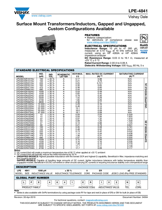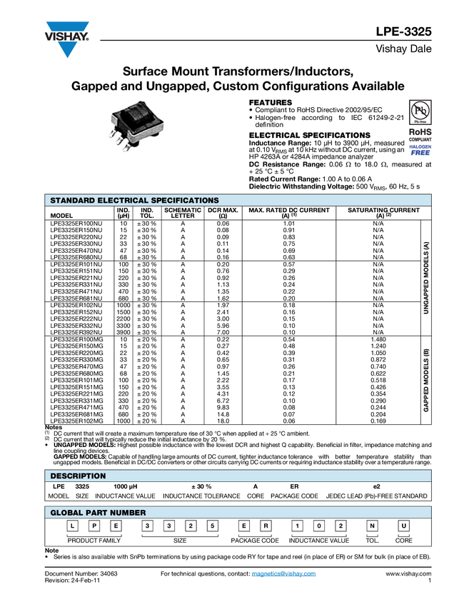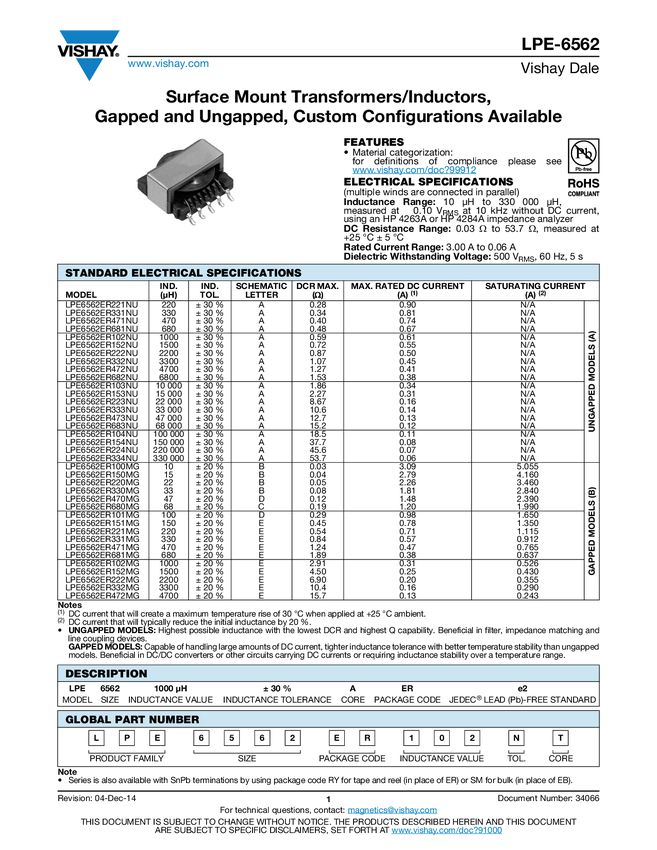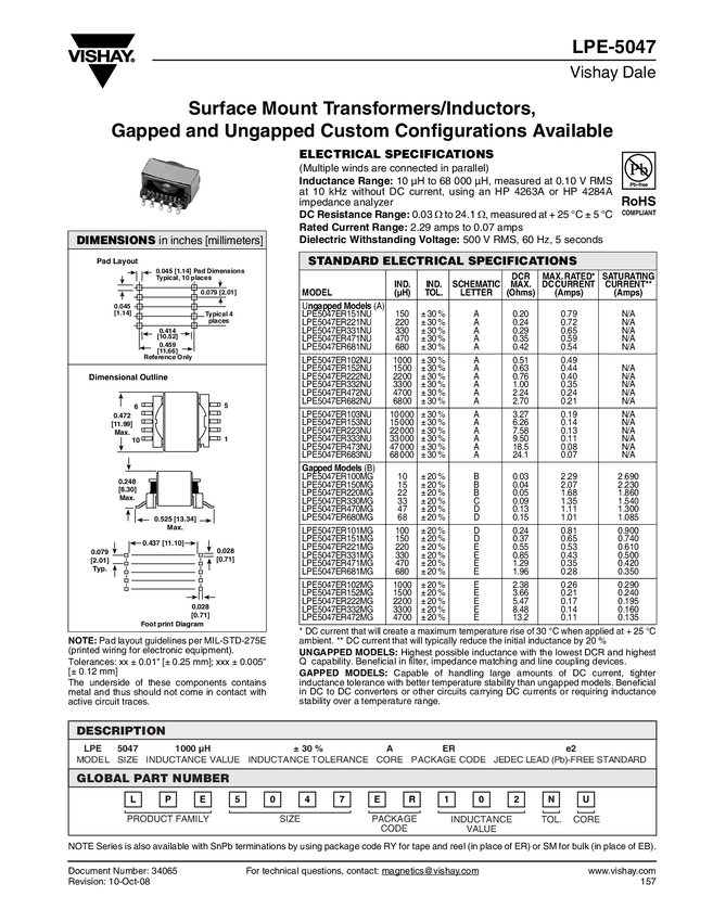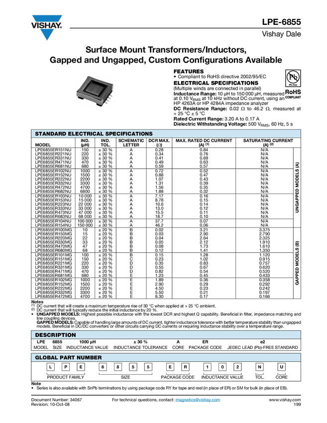 Surface Mount Transformers/Inductors, Gapped and Ungapped, Custom Configurations Available