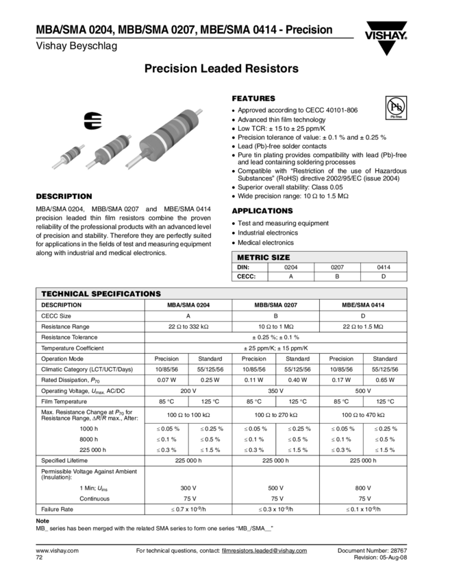 Res Metal Film 820K Ohm 1% 3/5W ±50ppm/°C Conformal AXL Thru-Hole Ammo Pack