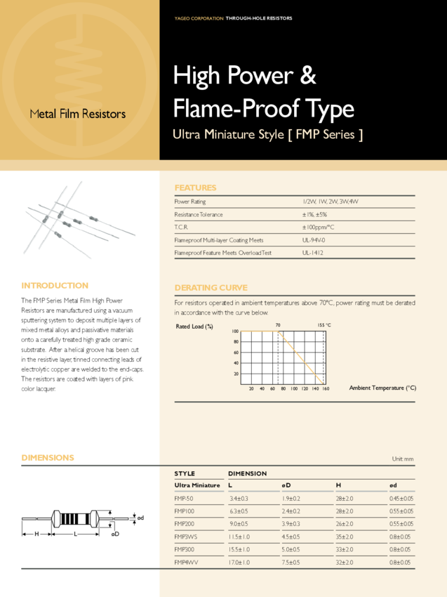 Res Metal Oxide 820 Ohm 5% 1W ±300ppm/°C Conformal AXL Thru-Hole Ammo Pack