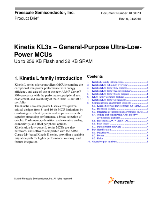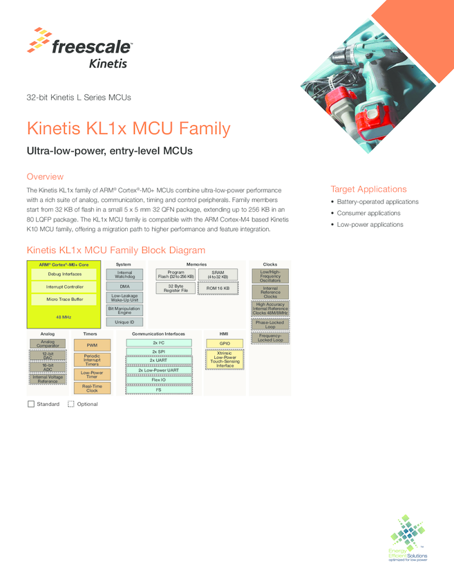 KL1x: Kinetis KL1x - 48 MHz, General Purpose, Connectivity, High Integration, Ultra Low Power Microcontrollers (MCUs)