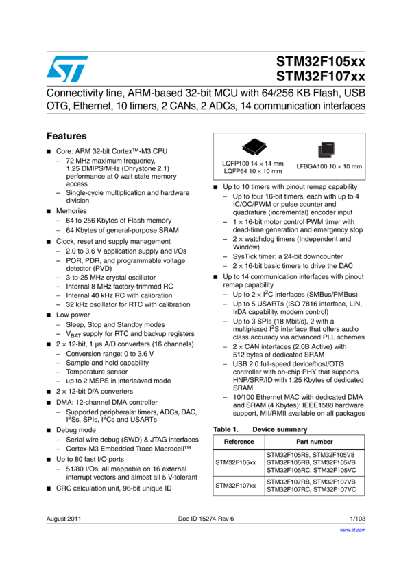 Mainstream Connectivity line, ARM Cortex-M3 with 64 Kbytes Flash, 72 MHz CPU, CAN, USB 2.0 OTG