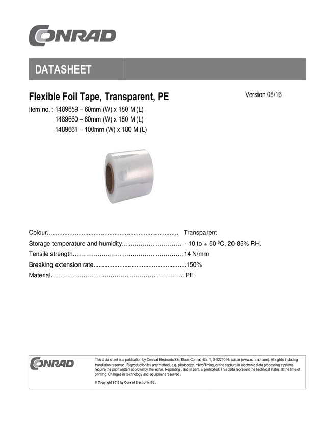 Folia stretch Conrad Components 1489659 (D x S) 180 m x 60 mm 180 m 1 szt.