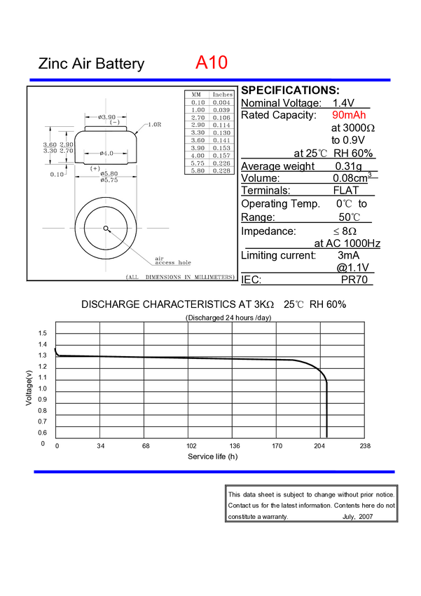 Ogniwo guzikowe ZA 10 Conrad energy 1.4 V 6 szt. 90 mAh cynkowo-powietrzne